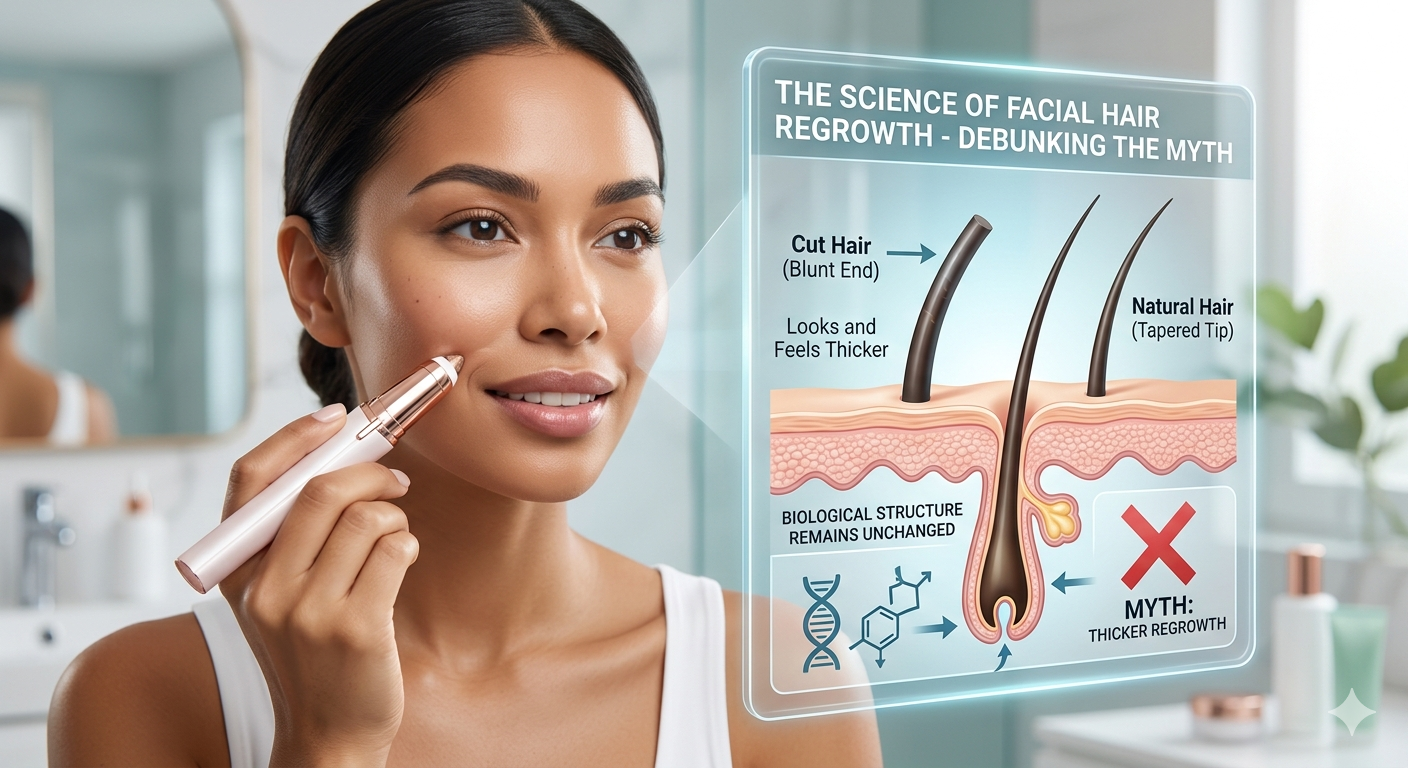 Yüzey tıraşı yalnızca cildin yüzeyindeki tüyleri giderir ve yeniden uzadıkça sertleşen geçici, küt bir uç oluşturur. Bu, "daha kalın saç" efsanesini besleyen en yaygın yöntemdir. Çünkü dermaplaning aynı zamanda ölü cilt hücrelerinin üst katmanını da temizler, yeni çıkan tüyler çok pürüzsüz bir ciltle yan yana gelerek, dokunulduğunda daha belirgin olmasını sağlar. Gerçekte, terminal saç or vellus saç (şeftali tüyü) biyolojik olarak değişmeden kalır.